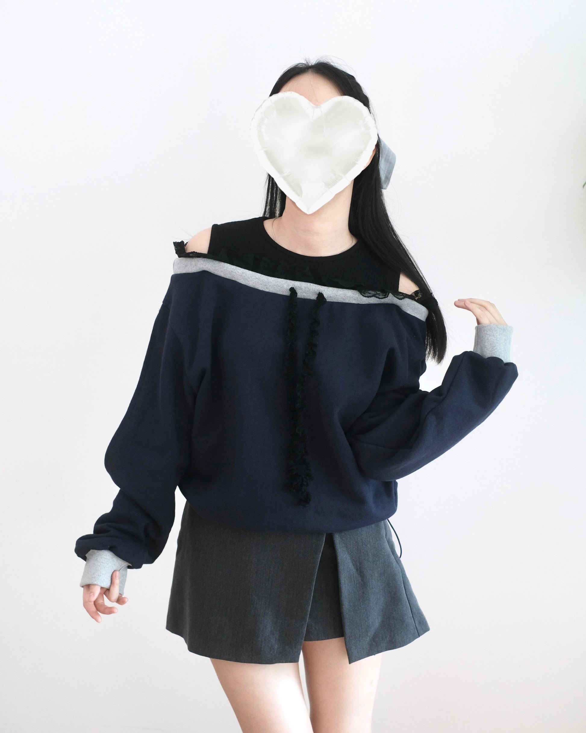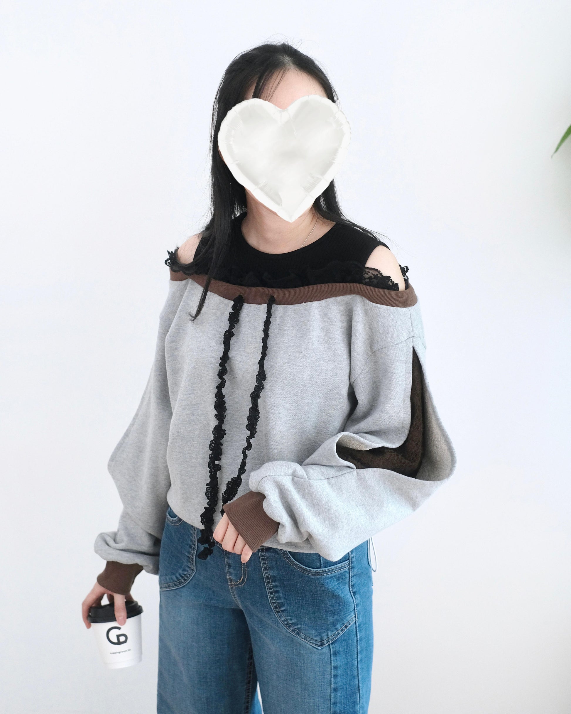 韓國假兩件Lace袖拼接衛衣
