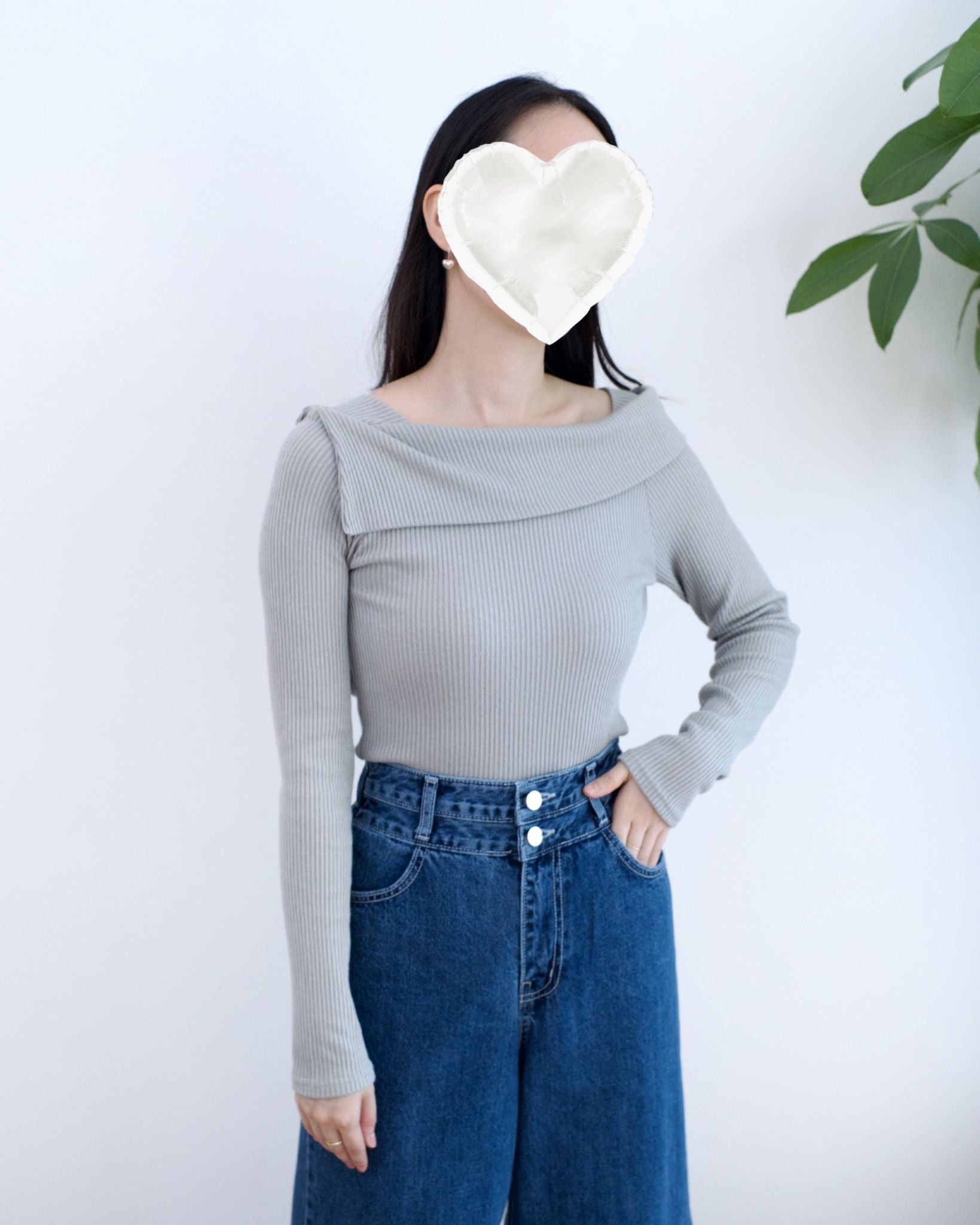 韓國秋季斜肩淨色𝖳𝗈𝗉 ৎ