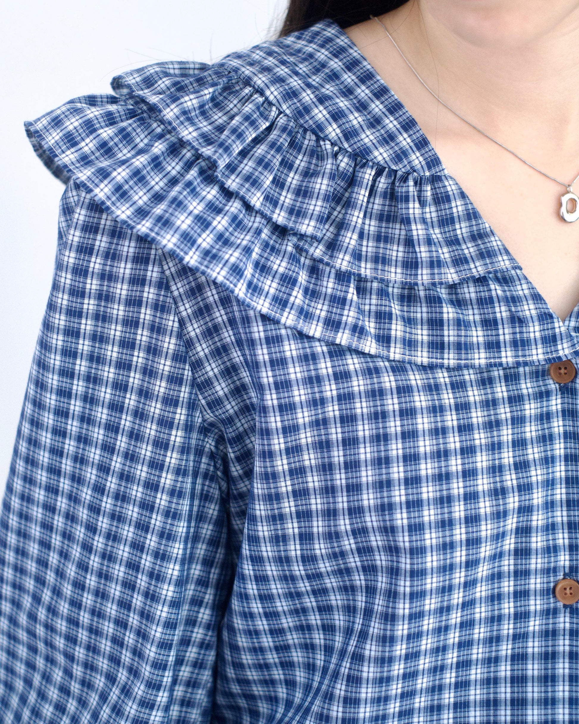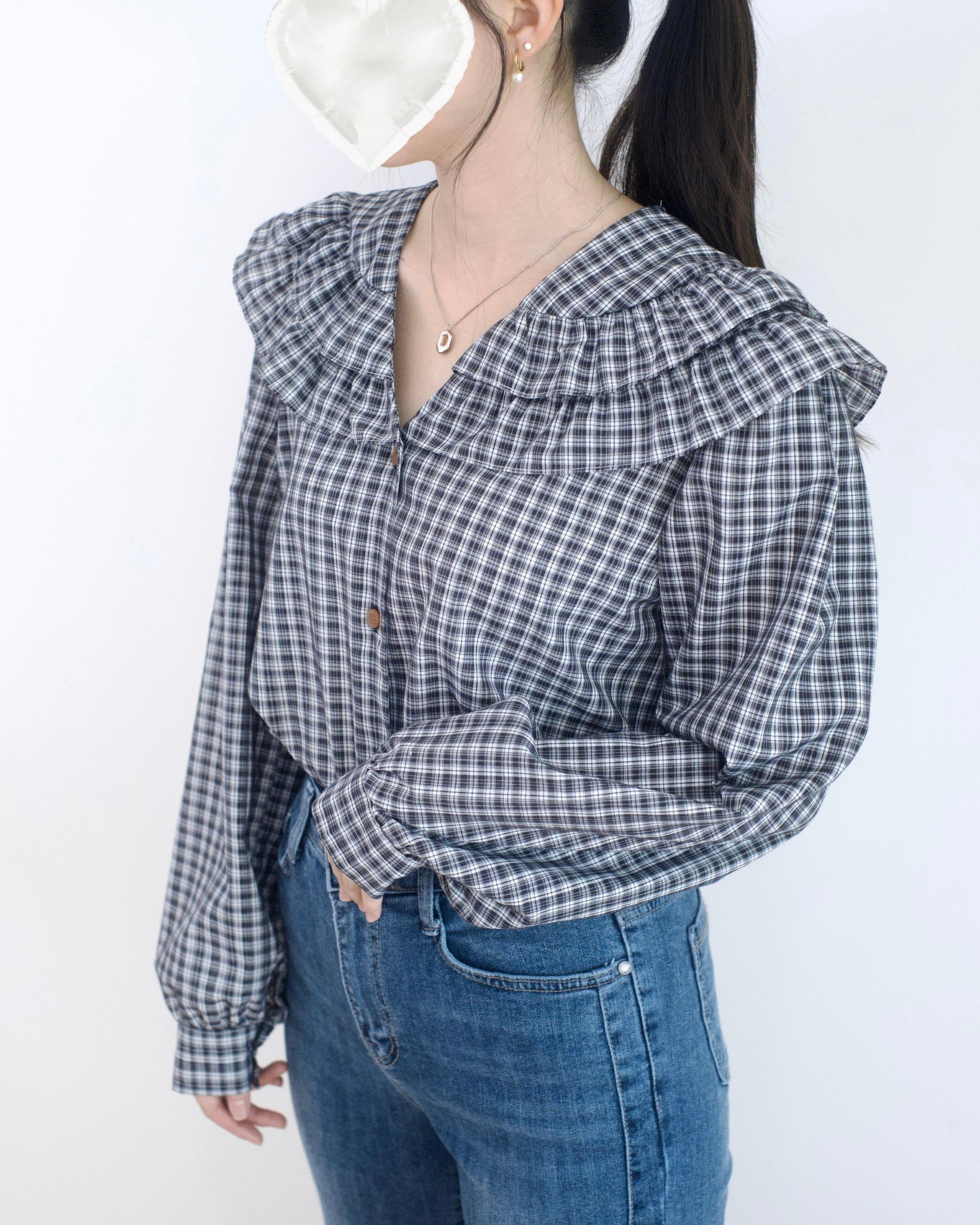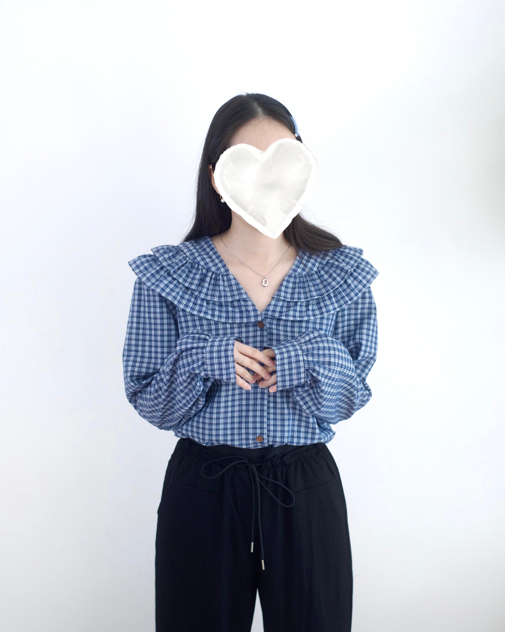 秋季韓國格仔荷葉邊襯衫 ❤︎