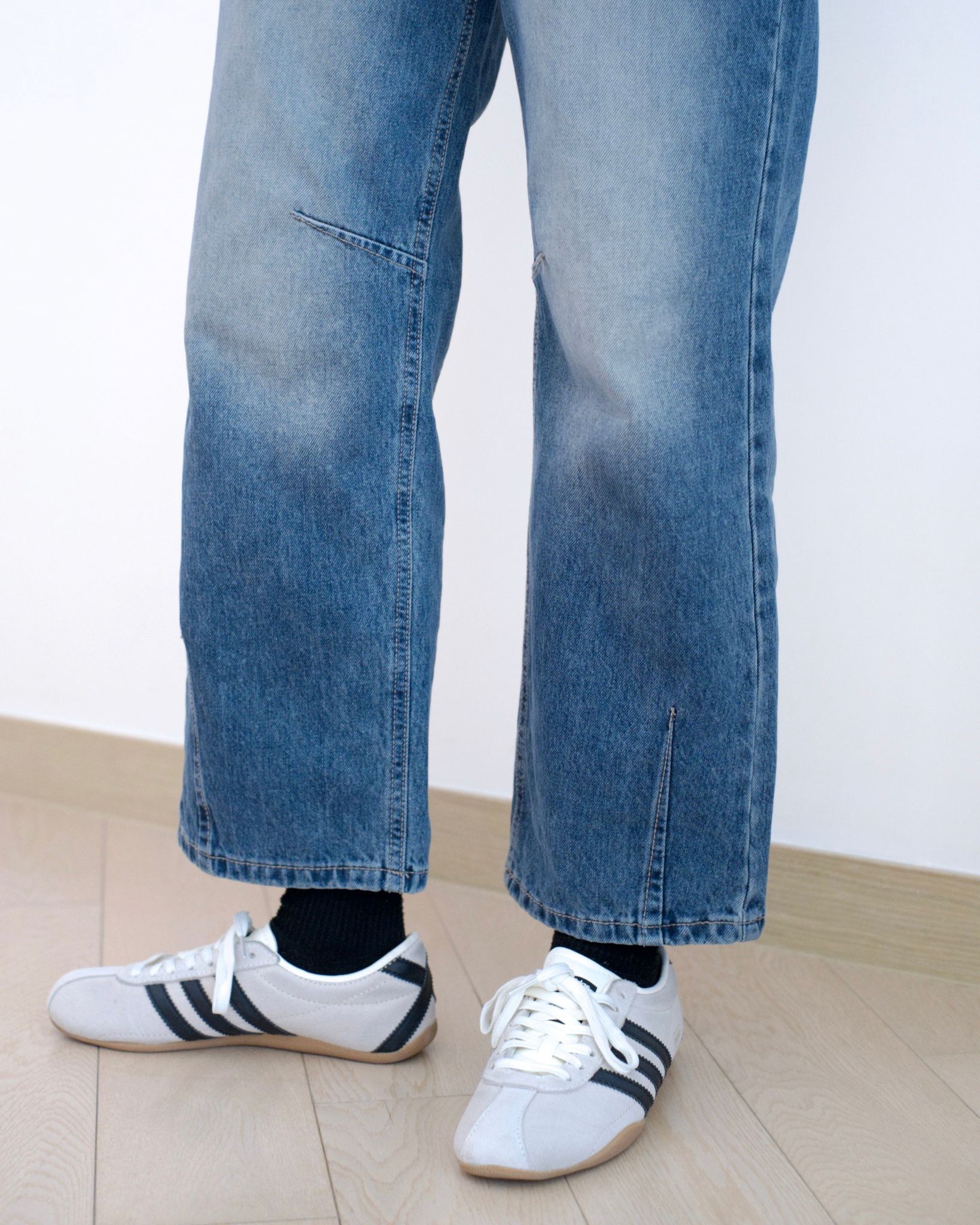 高腰洗水設計,小腿及褲腳車骨剪裁