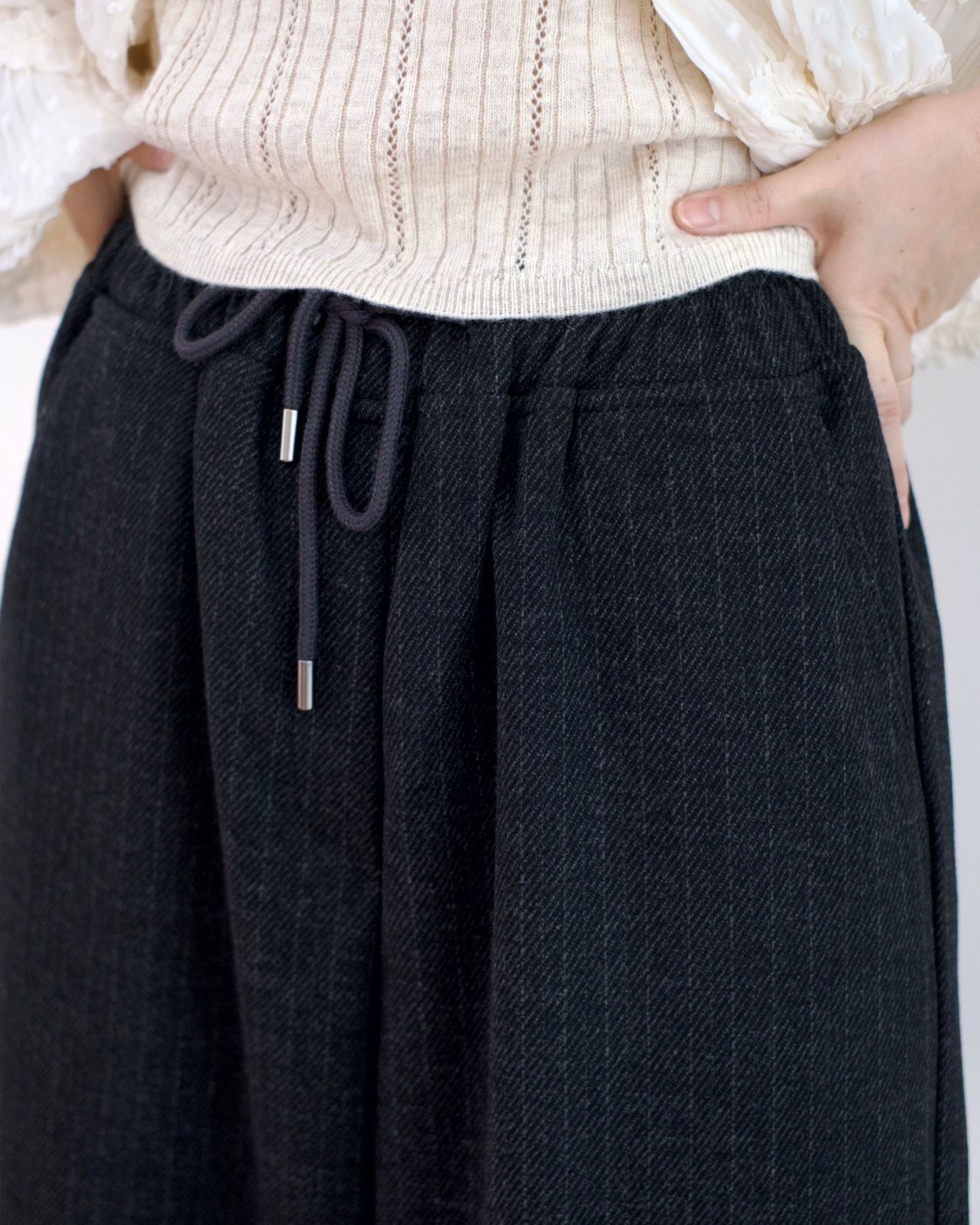 全橡筋腰圍很有彈性, 條子併綁繩