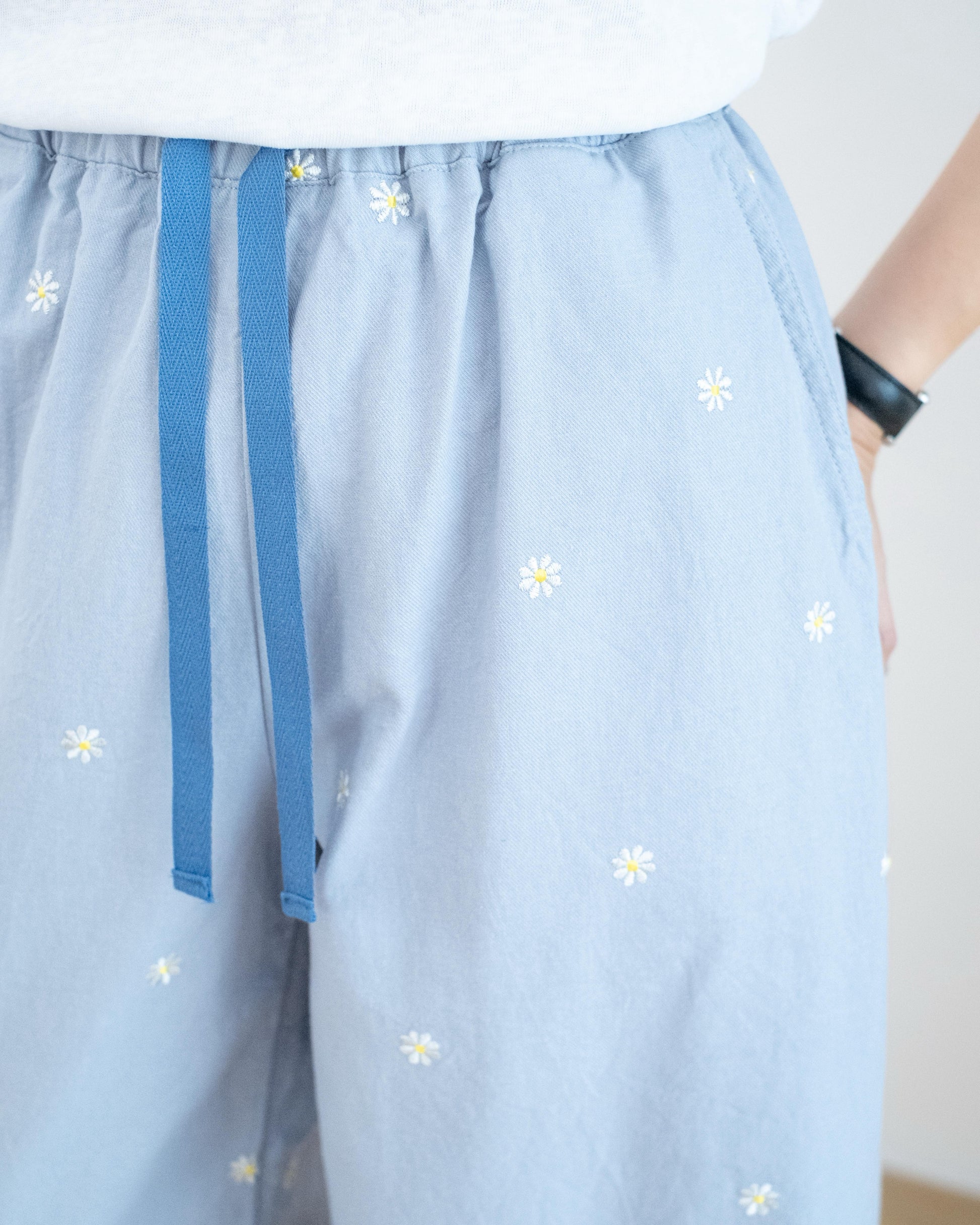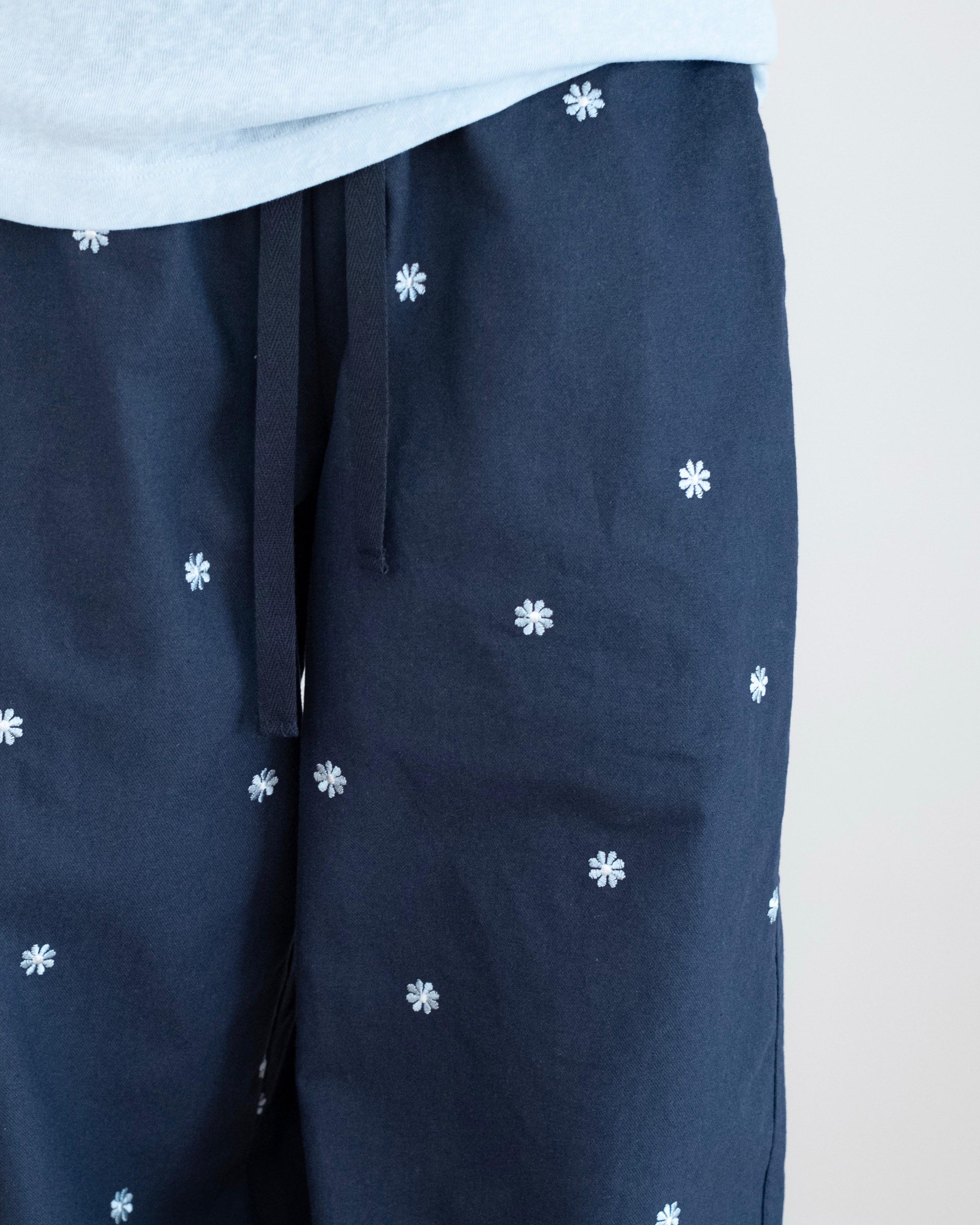 韓國雛菊刺繡闊腳扯布褲