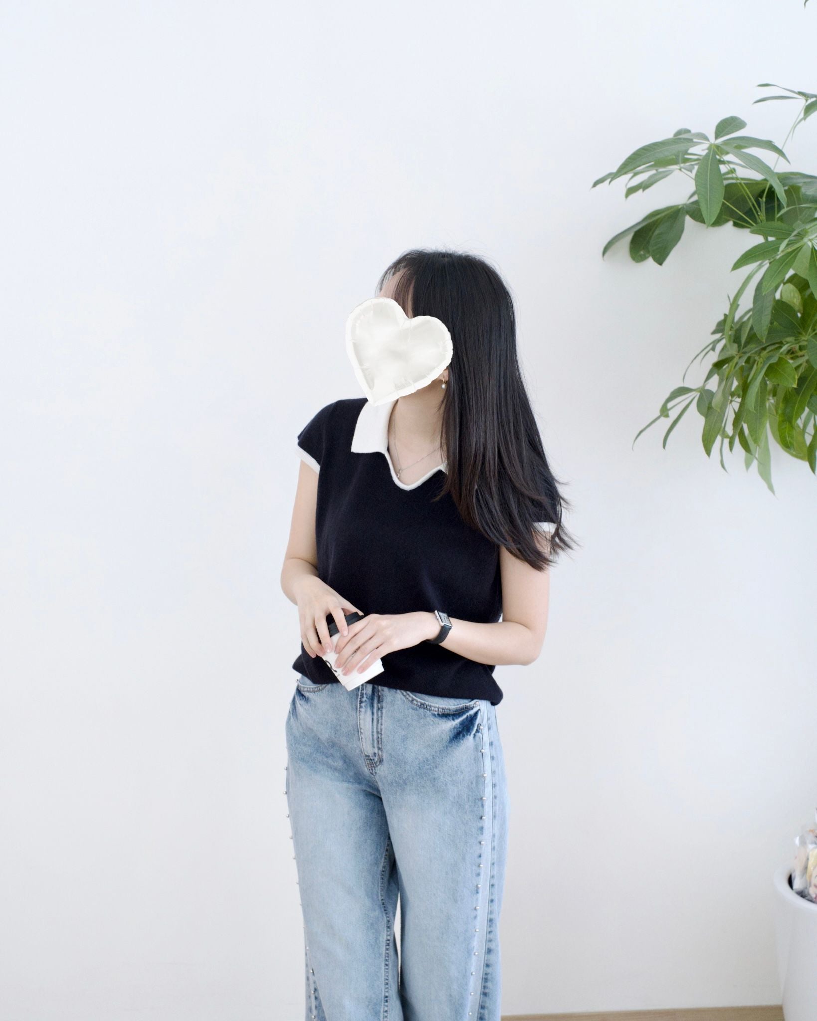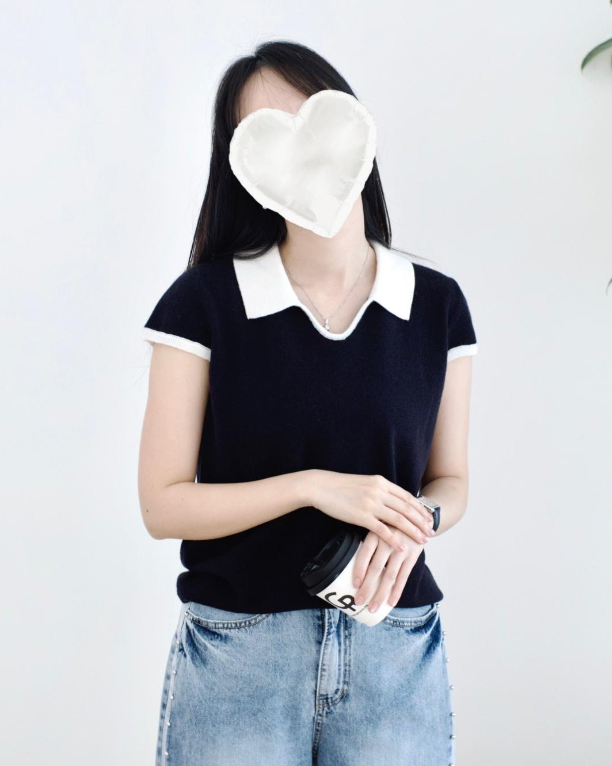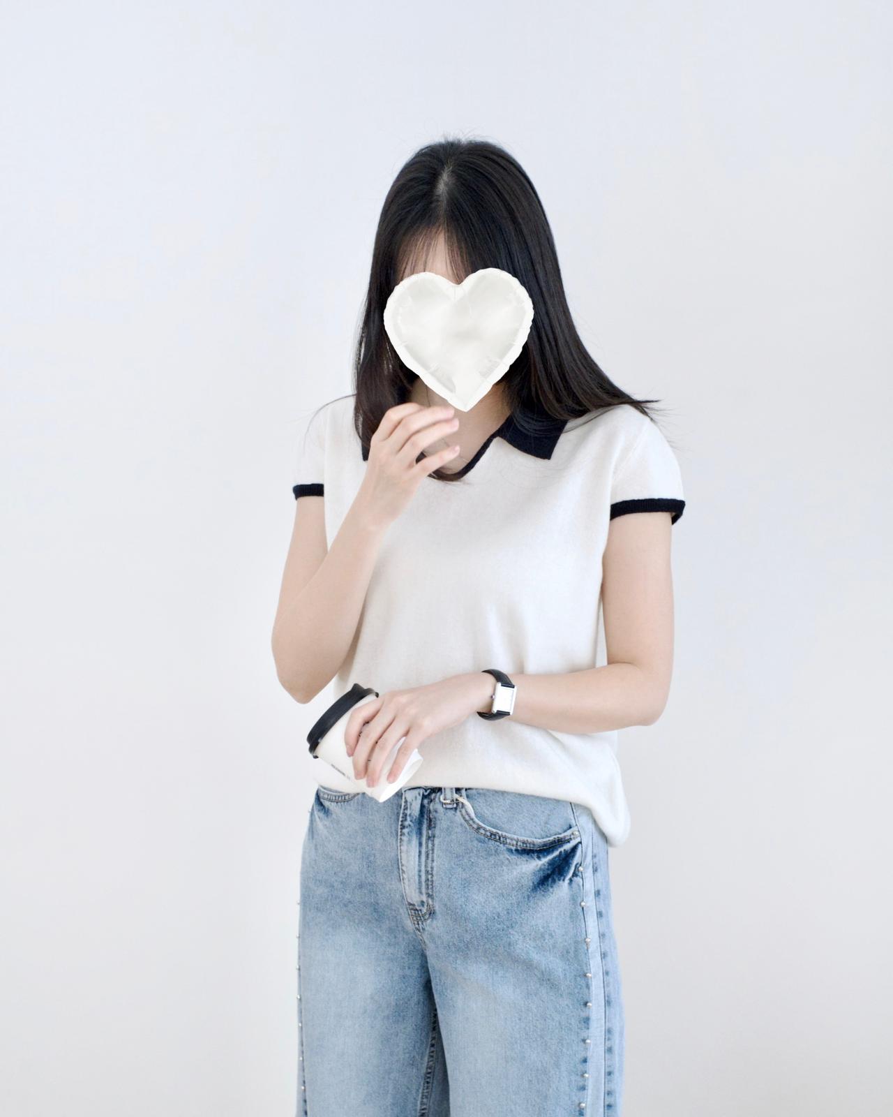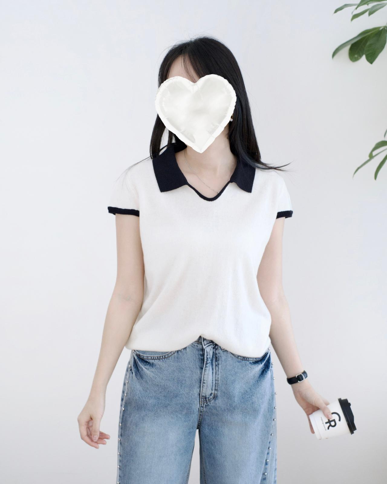 小v領撞色翻領設計꣑ৎ 質地很