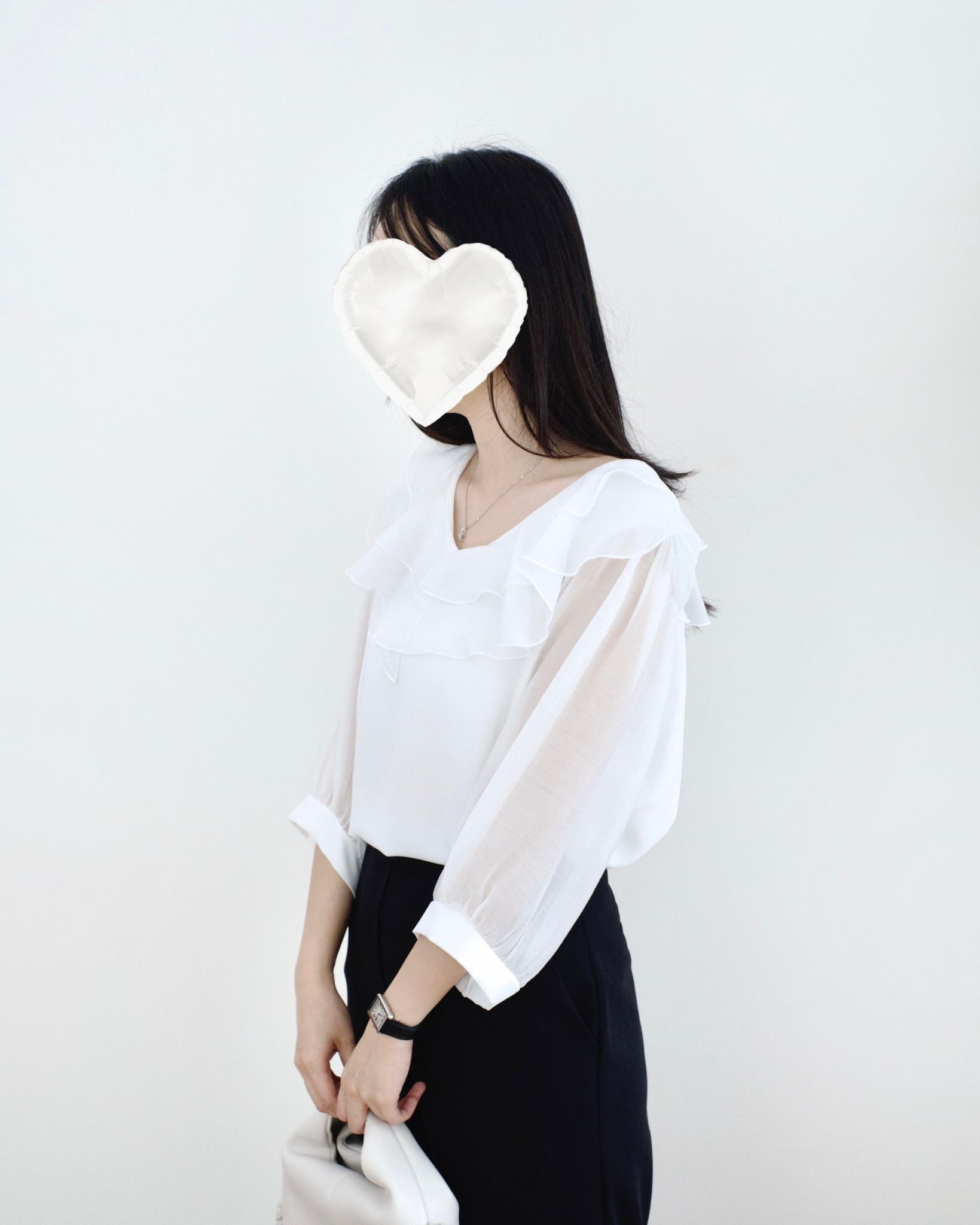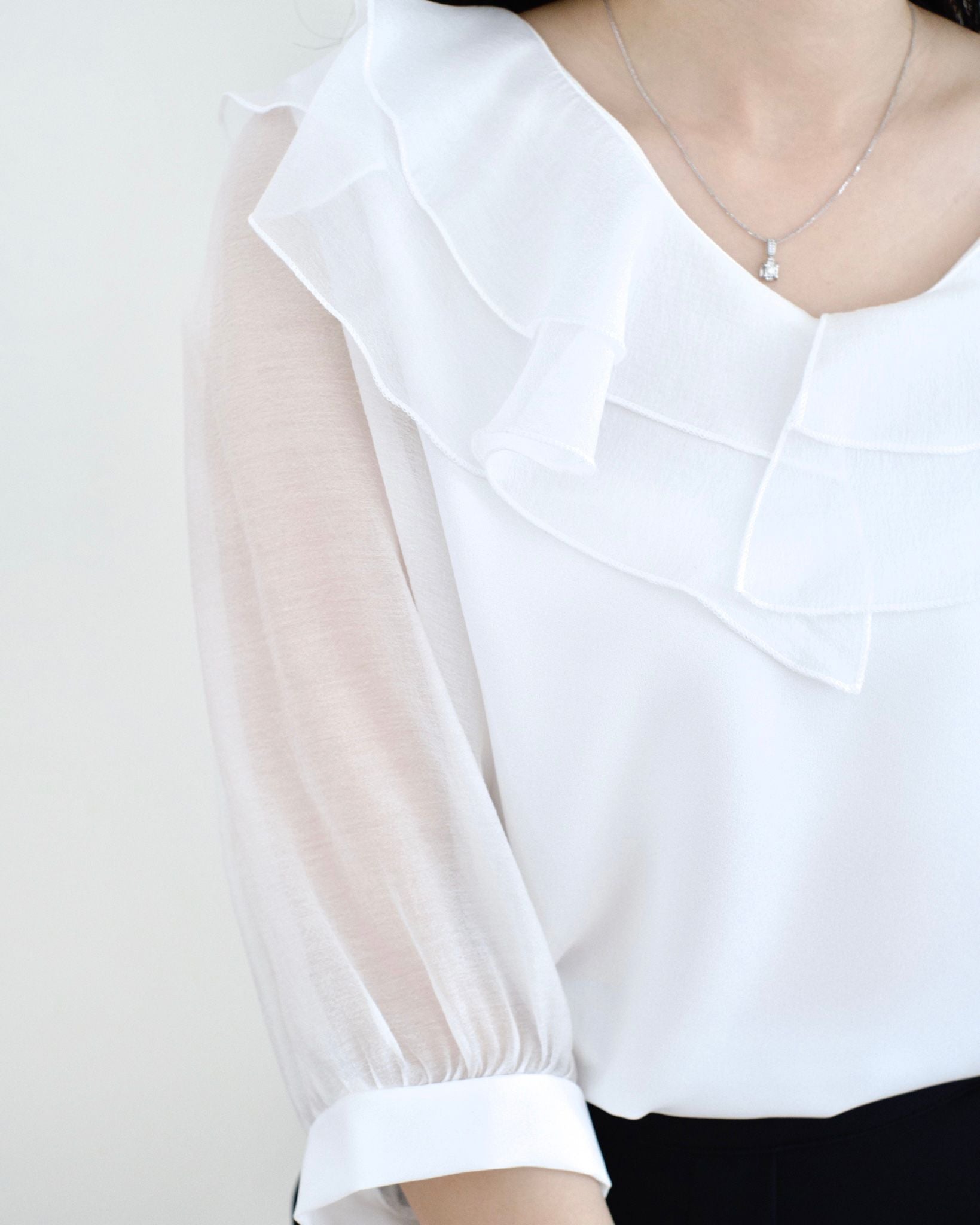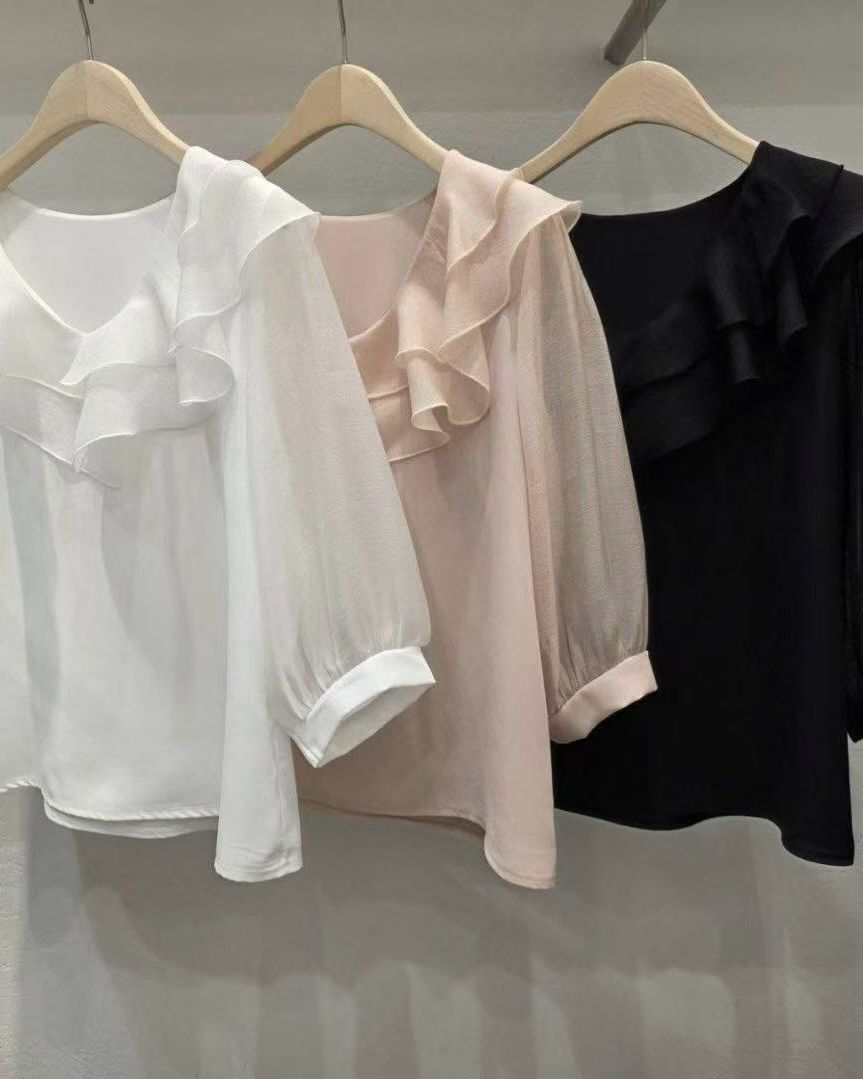 韓國Ruffle雪紡襯衫