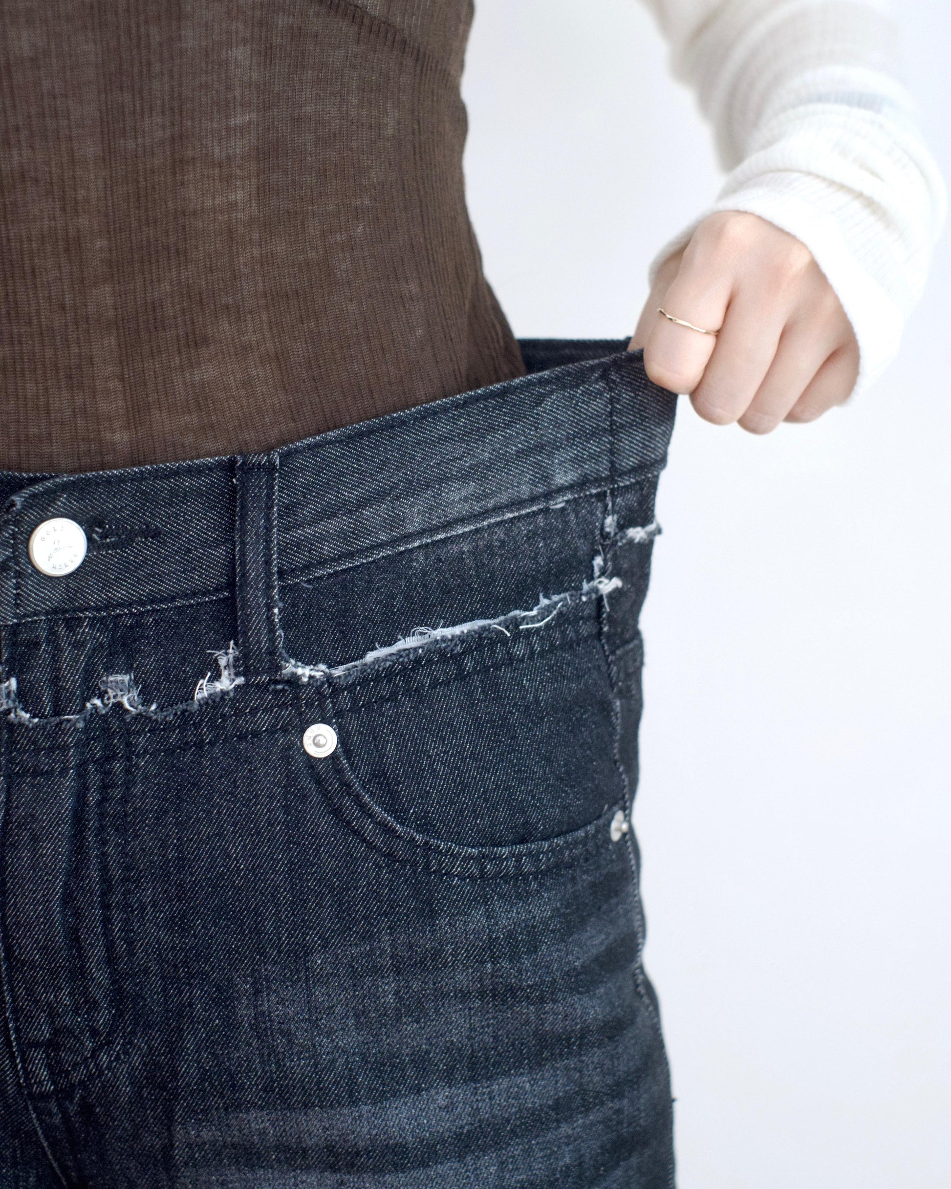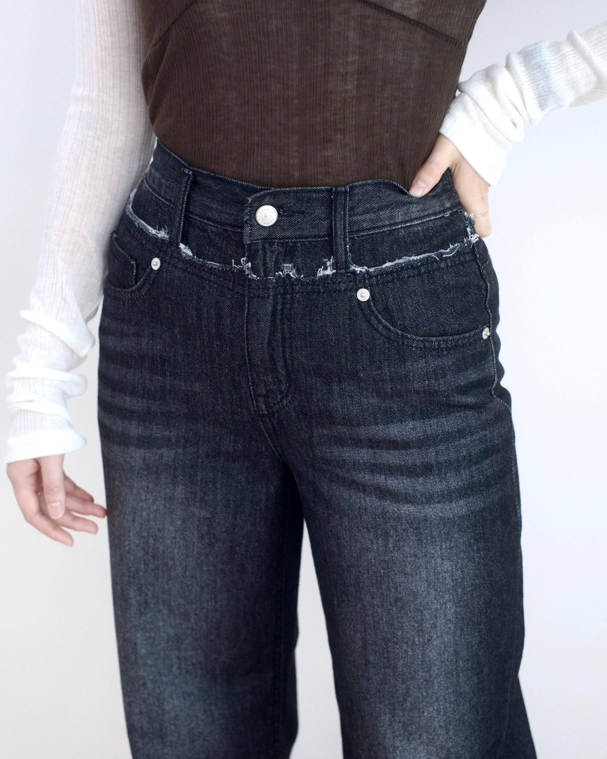 Gori 黑色洗水拼接牛仔褲