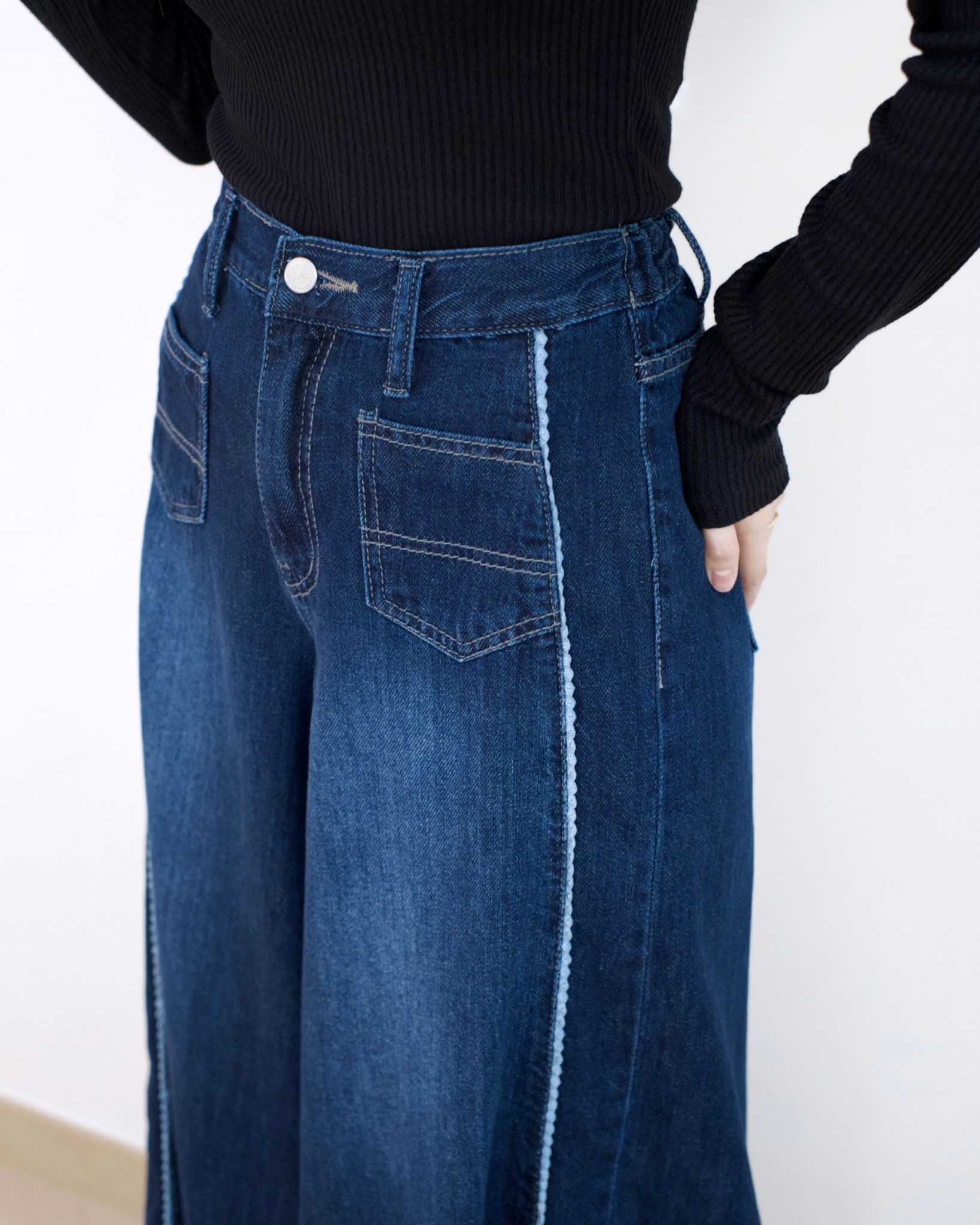 秋季韓國闊筒九分牛仔褲‧₊˚