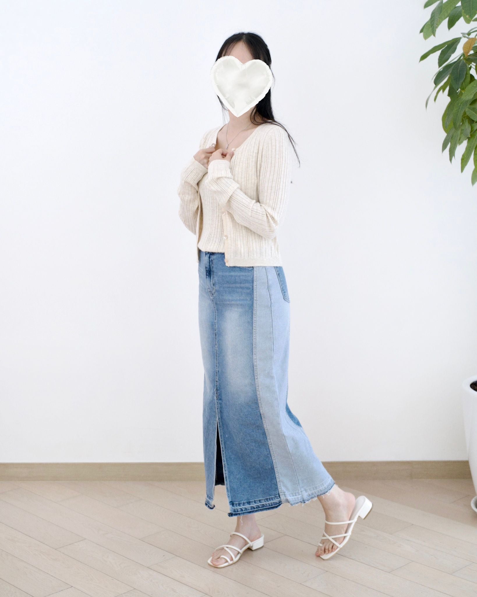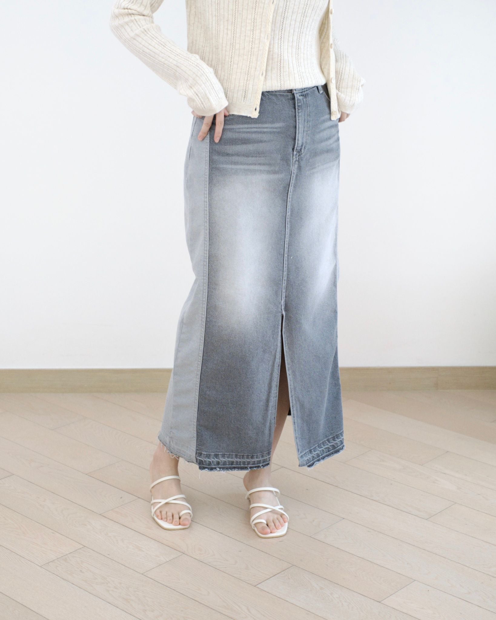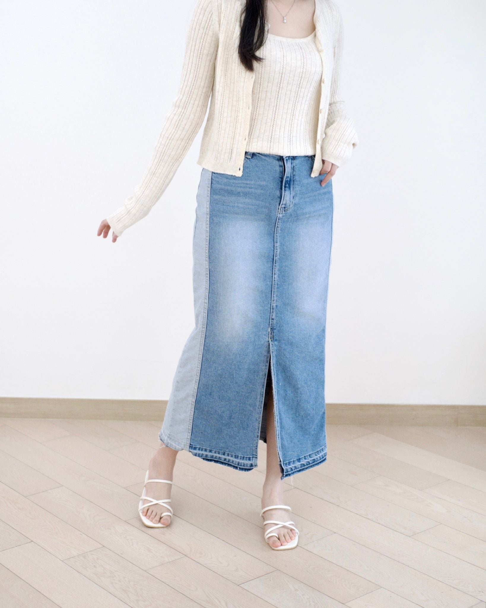 Howluk 併色中長牛仔裙