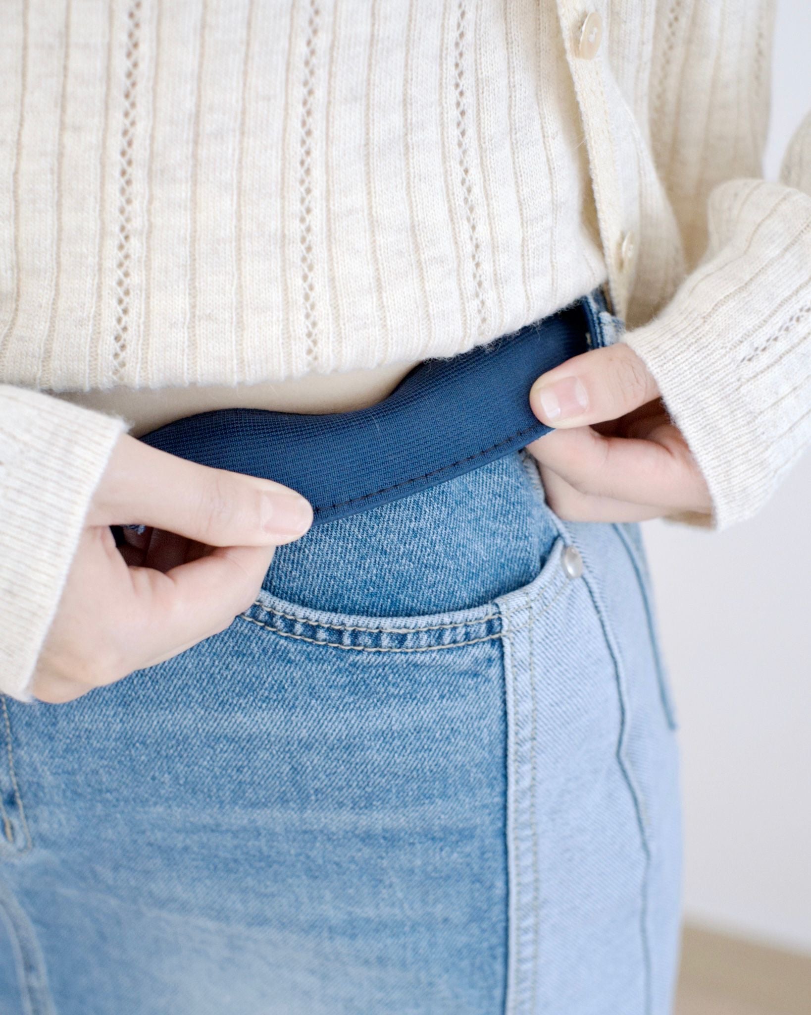 高腰腰內橡根腰圍,兩側併色前開衩