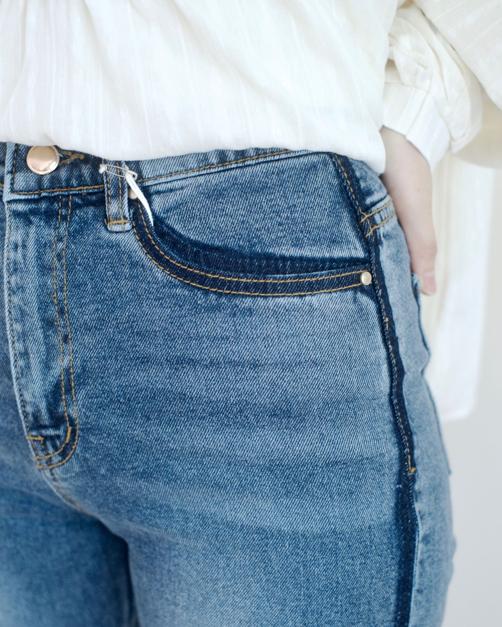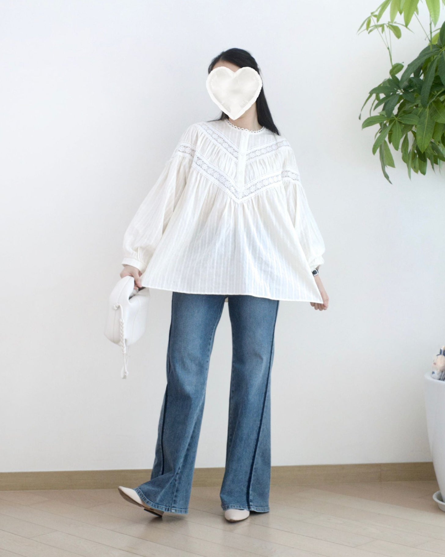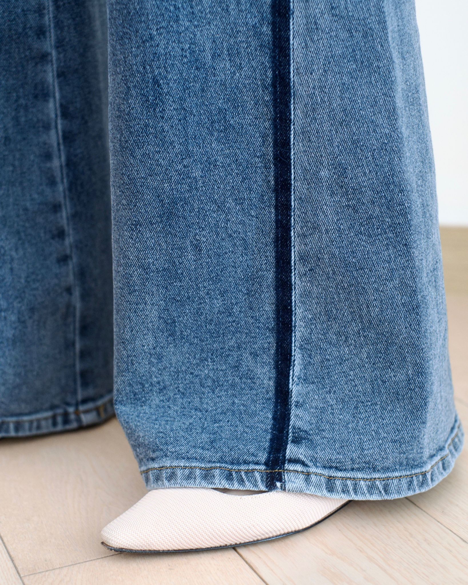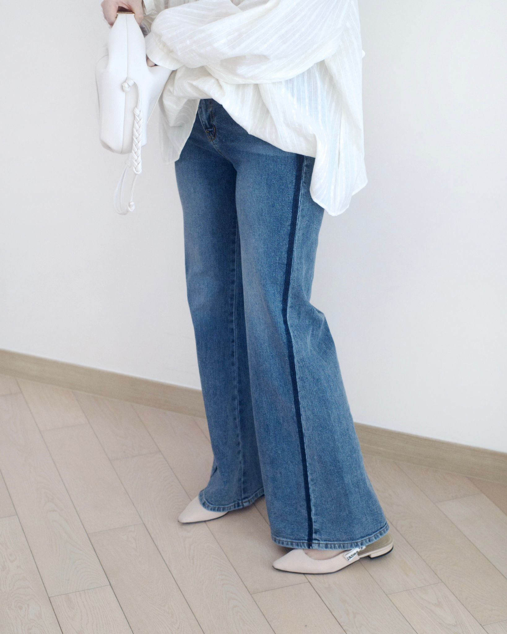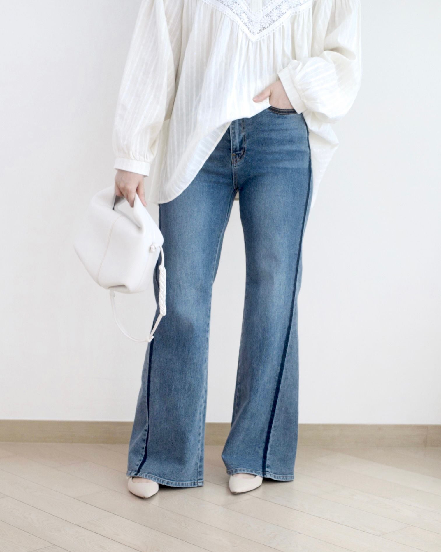 至小腿拼邊闊腳剪裁,牛仔褲更有設計感𓈒𓂂𖧷𓈒