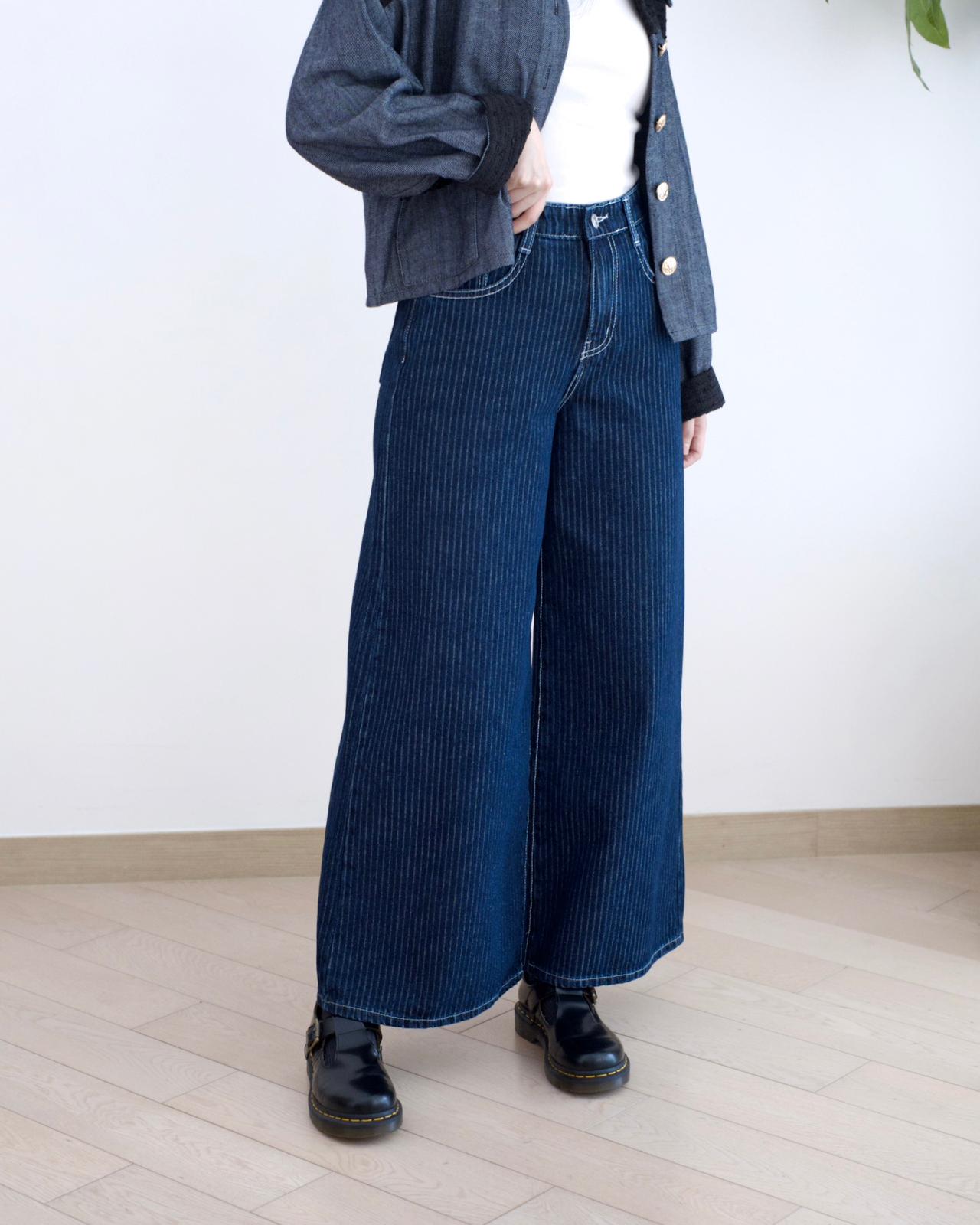 Moci 直紋薄絨牛仔褲