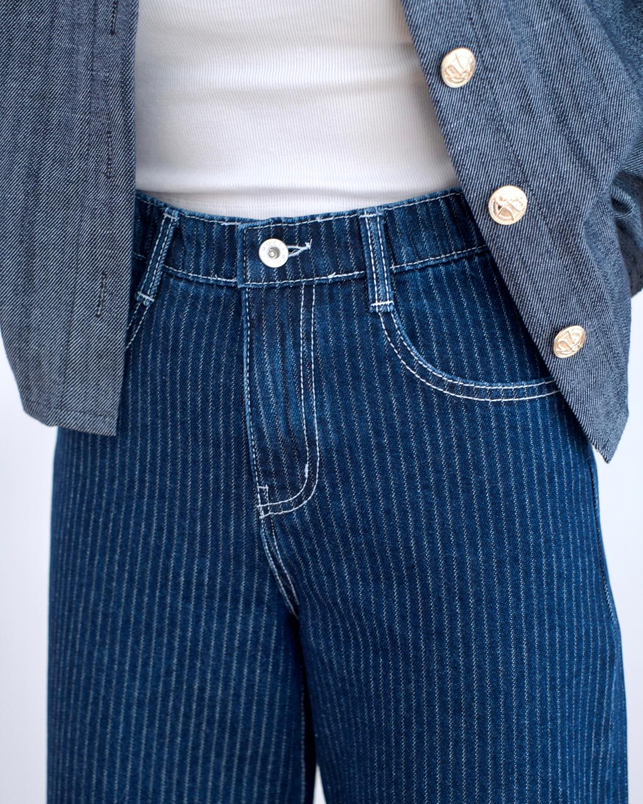 Moci冬季直紋薄絨牛仔褲 ♡