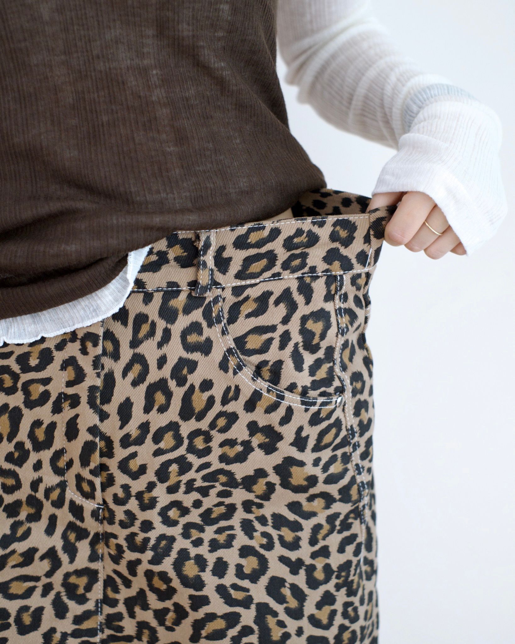 後橡根腰圍拼豹紋圖案側設計
