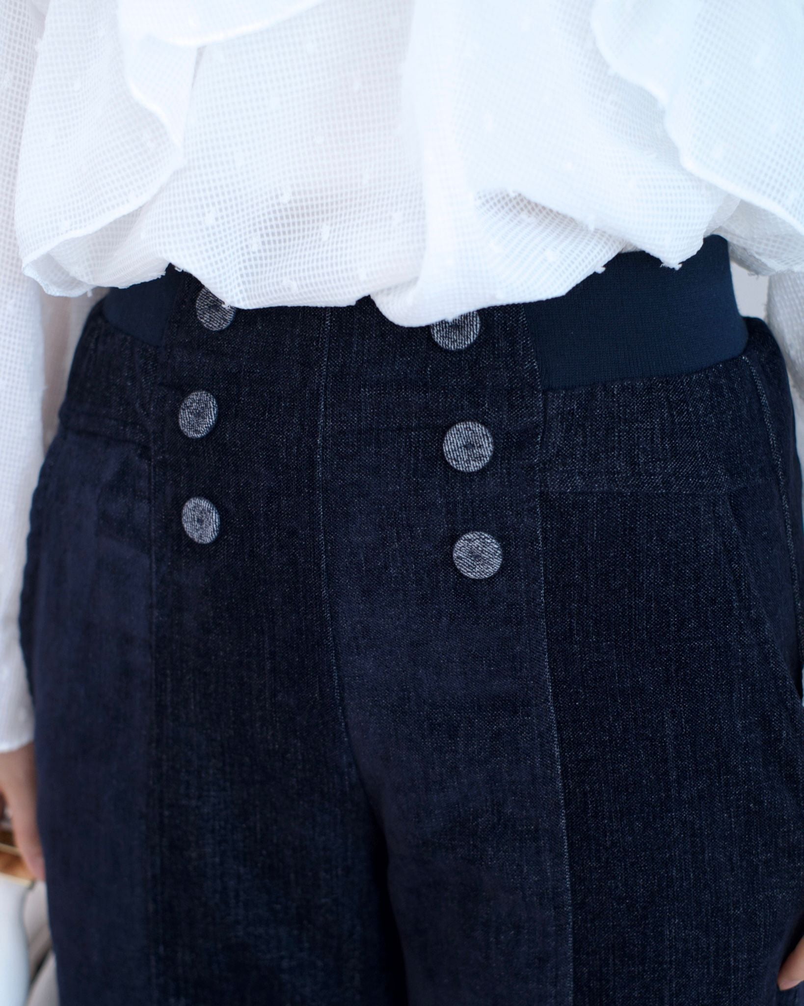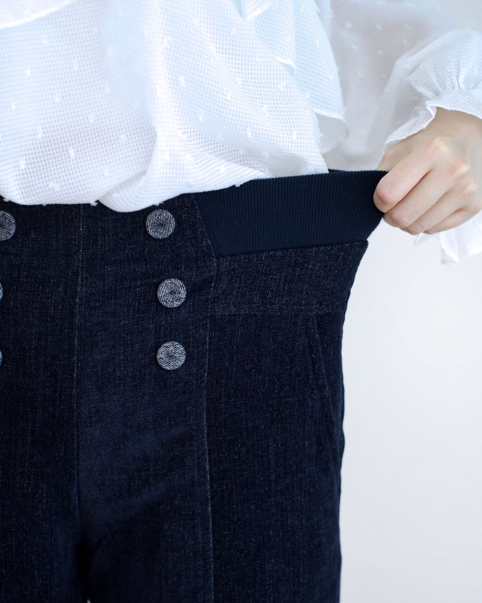 橡筋腰圍有彈性撞前面6粒鈕扣
