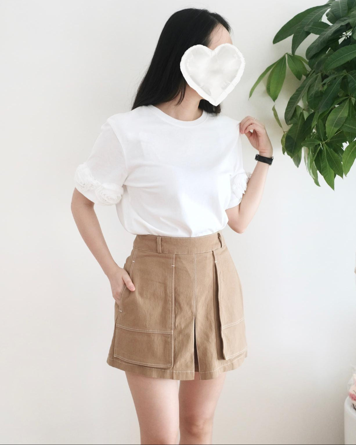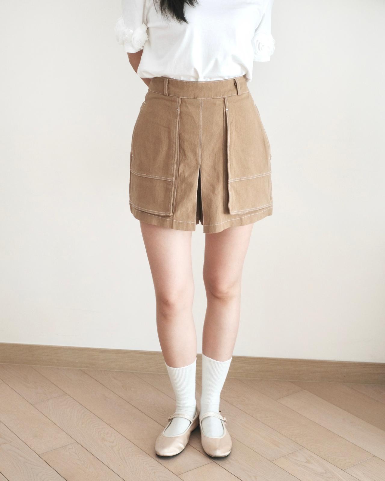 Moci 高腰大口袋扯布短褲
