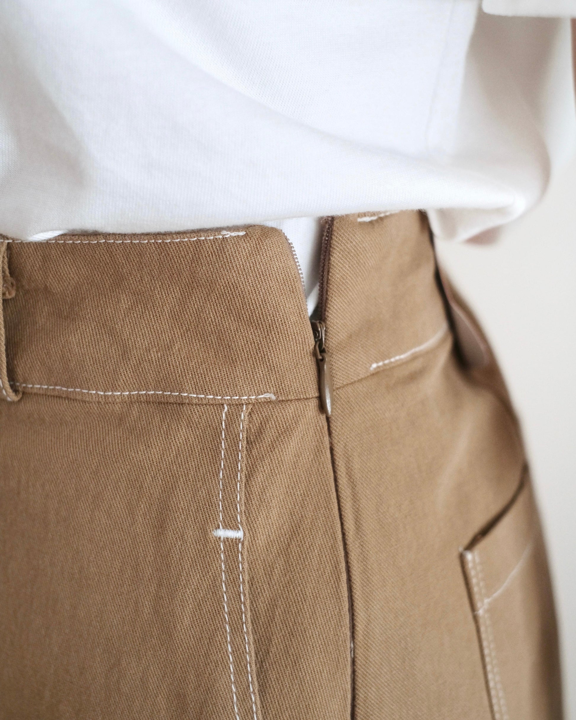 高腰側面拉鍊拼大口袋設計