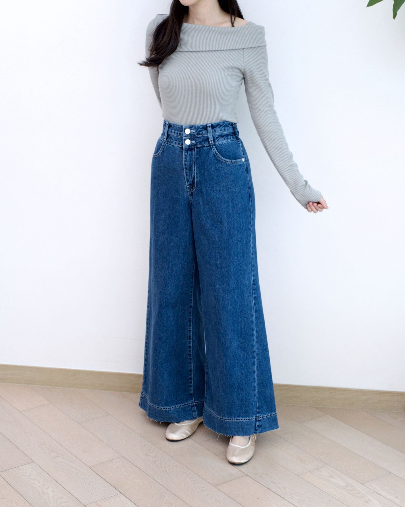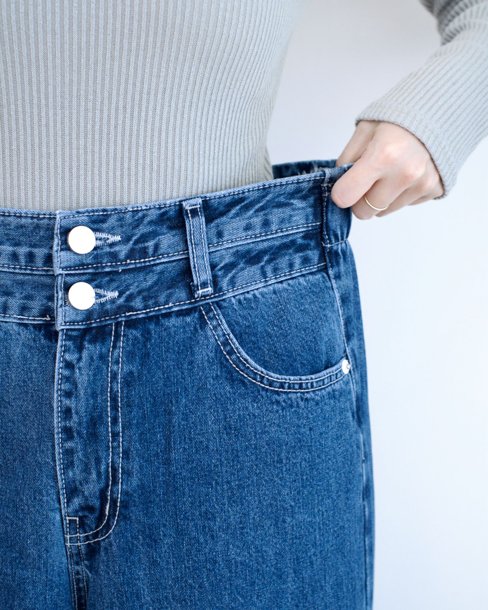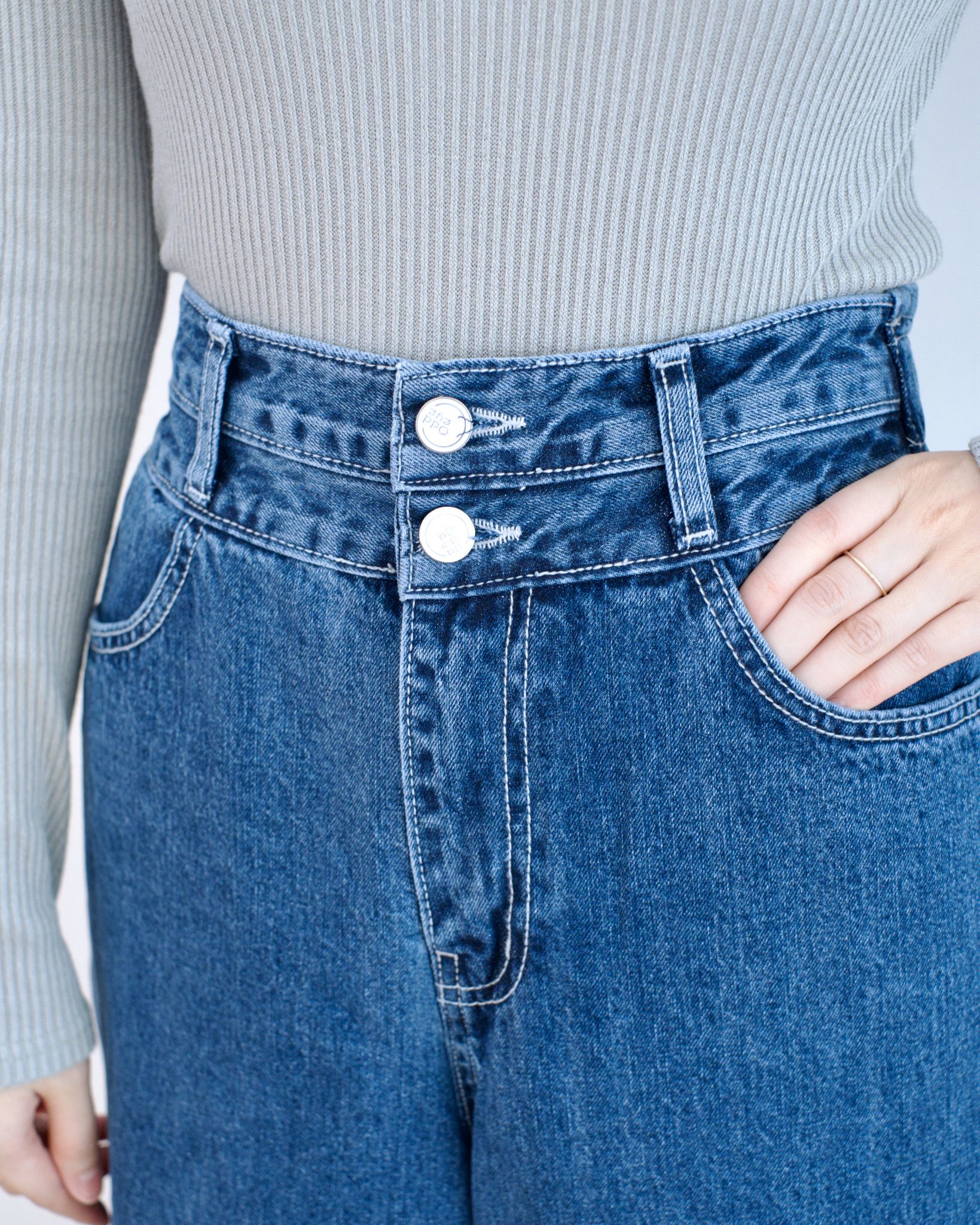 韓國秋季鈕扣闊筒牛仔褲︎ ꙳✧