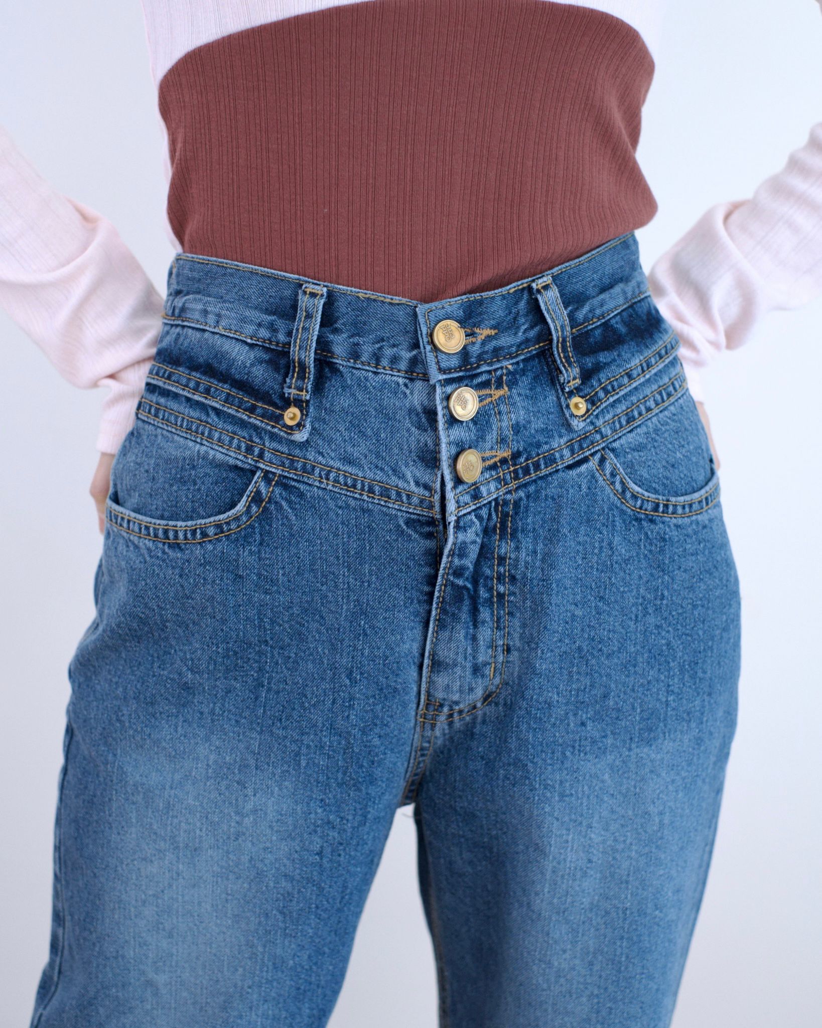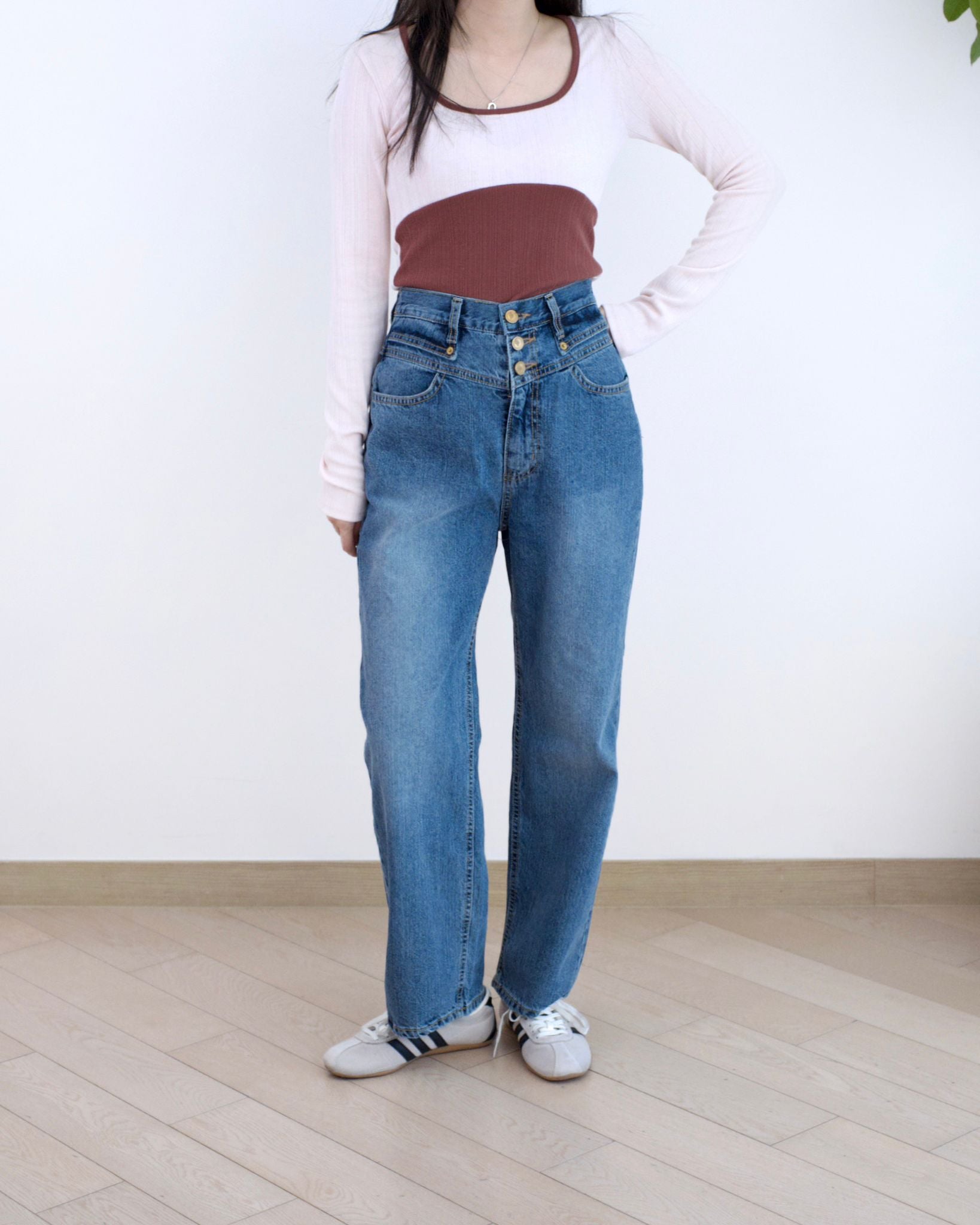 Odd Eye 鈕扣高腰直筒牛仔褲