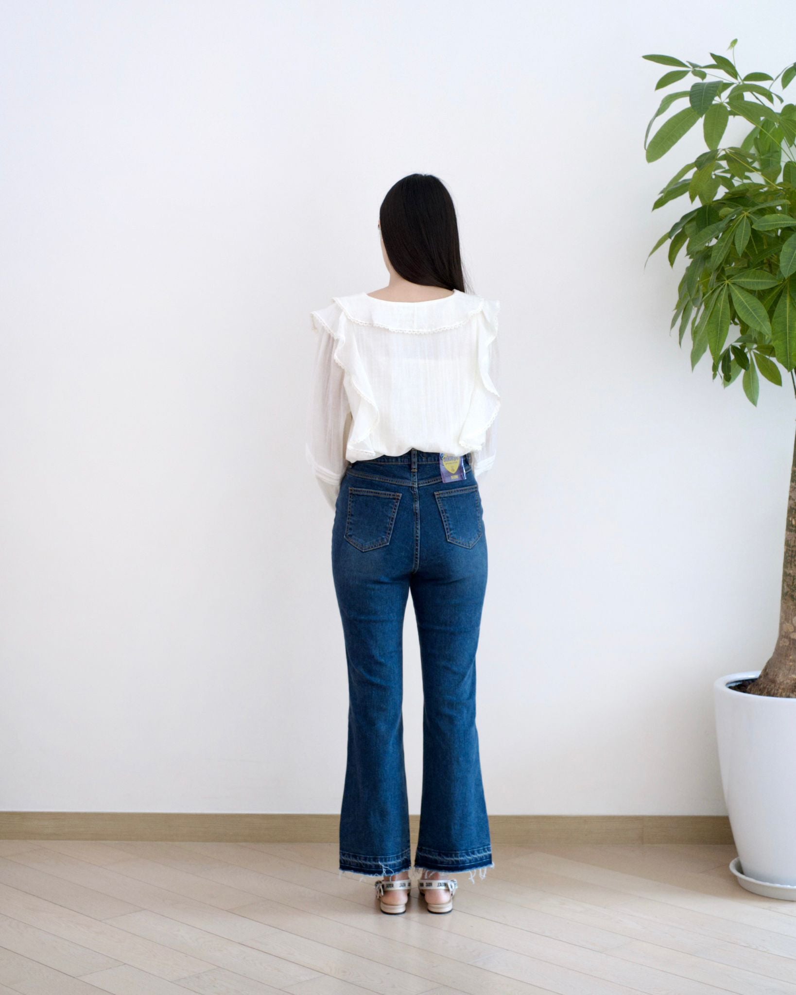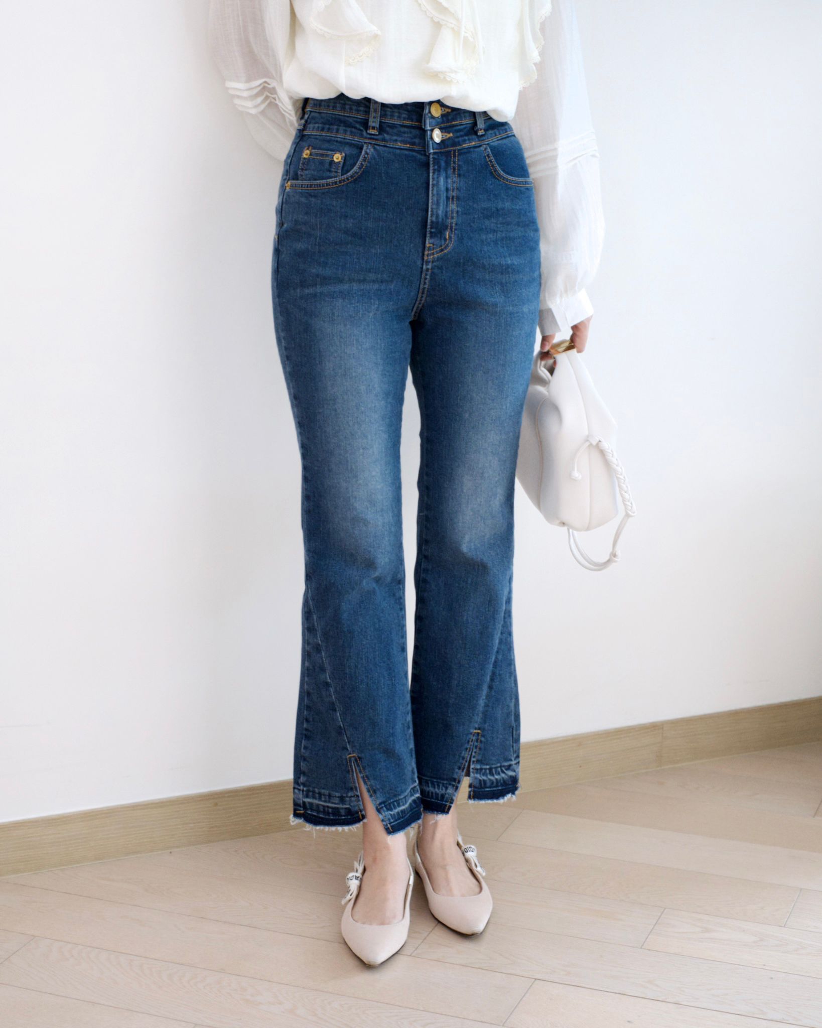 Odd Eye 高腰開衩微喇叭牛仔褲