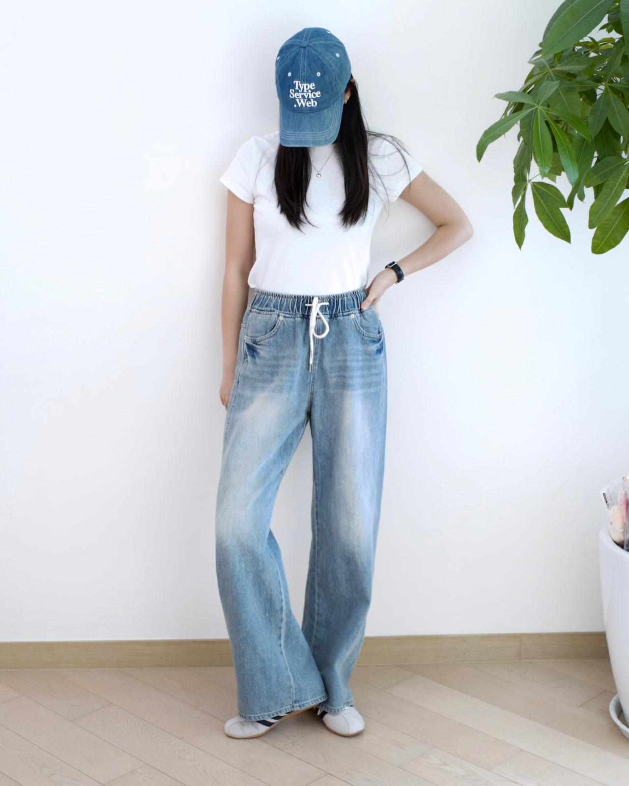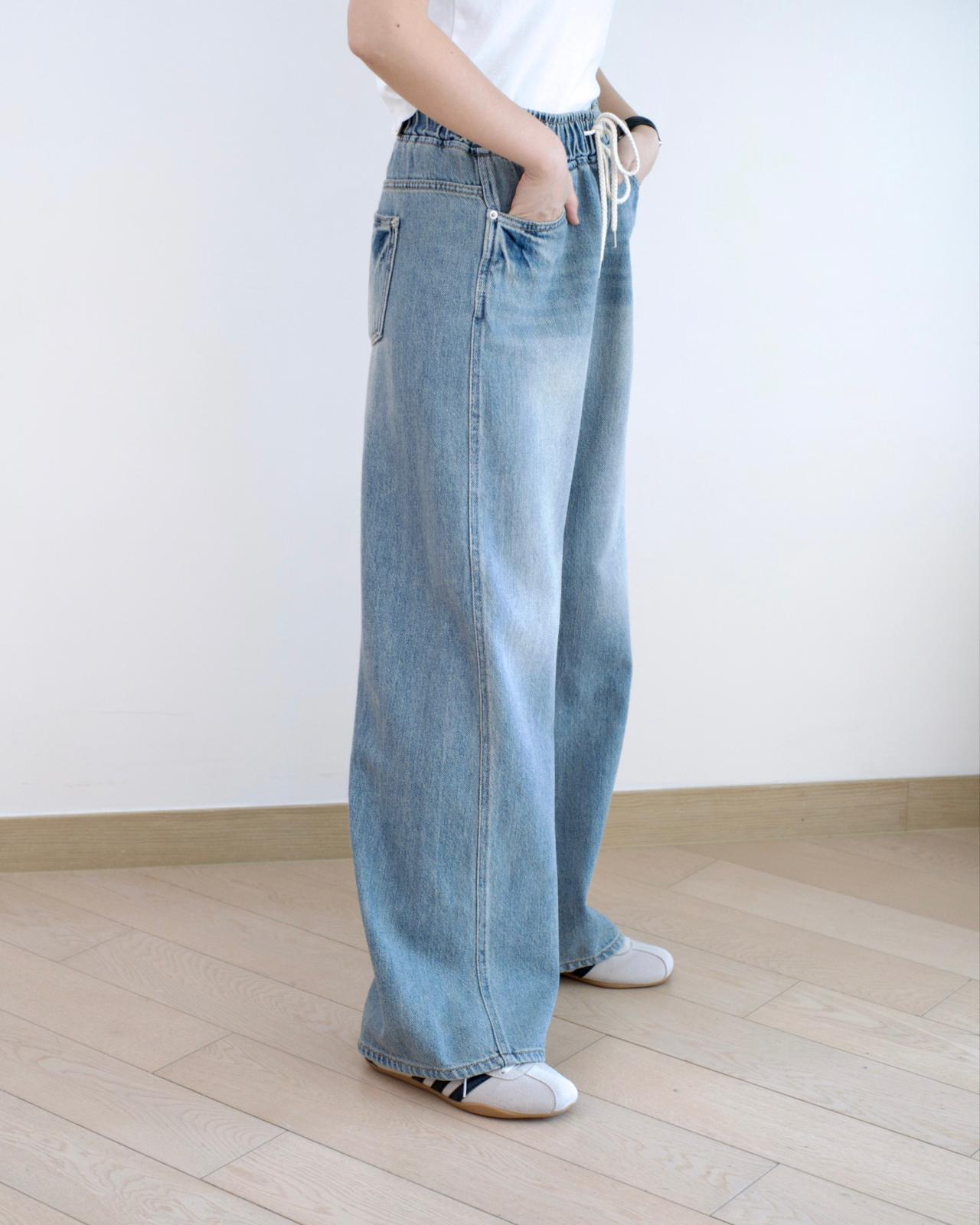 Vikini 全橡筋闊筒牛仔褲